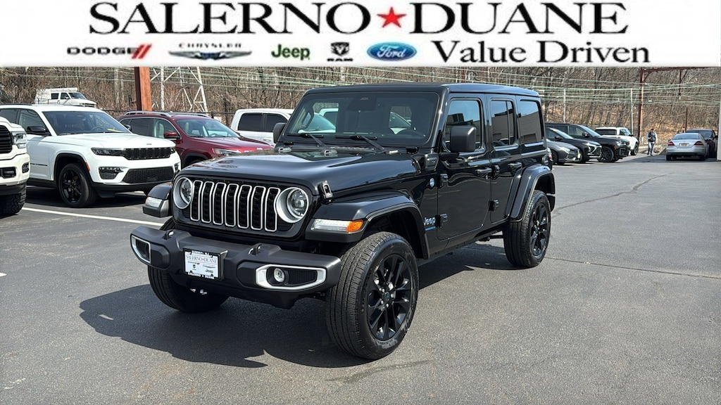 CARFAX One-Owner. Clean CARFAX. Certified. Black Clearcoat 2025 Jeep Wrangler Sahara 4xe 4WD 8-Speed Automatic 2.0L I4 DOHC