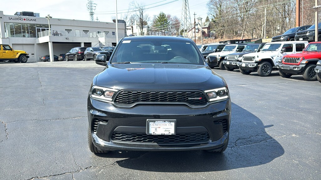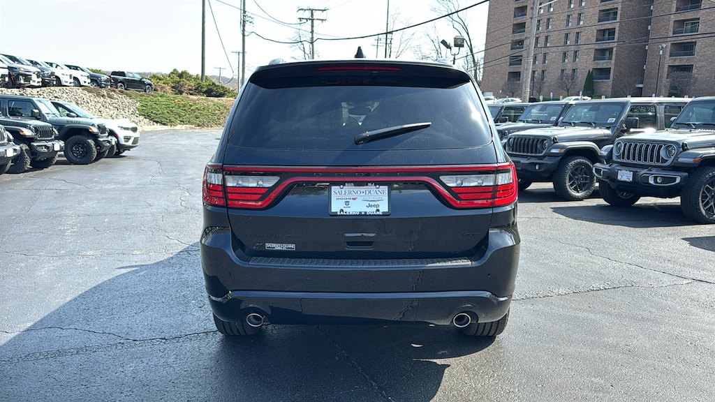 DB Black Crystal Clearcoat 2026 Dodge Durango GT AWD 8-Speed Automatic 3.6L V6 24V VVT AWD, 3.45 Rear Axle Ratio, 3rd row seats: split-bench, 4-Wheel Disc Brakes, 6 Speakers, ABS brakes, Air Conditioning, Alloy wheels, AM/FM radio: SiriusXM w/360L, Apple CarPlay/Android Auto, Auto-dimming Rear-View mirror, Automatic temperature control, Black Roof Rails, Blacktop Package, Brake assist, Bumpers: body-color, Cloth Bucket Seats with Shift Insert, Compass, Delay-off headlights, Driver door bin, Driver vanity mirror, Dual front impact airbags, Dual front side impact airbags, Electronic Stability Control, Emergency communication system: Dodge Connect, Exterior Mirrors with Heating Element, Four wheel independent suspension, Front anti-roll bar, Front Bucket Seats, Front Center Armrest w/Storage, Front dual zone A/C, Front License Plate Bracket, Front reading lights, Fully automatic headlights, Garage door transmitter, Gloss Black Badges, Gloss Black Exterior Mirrors, GT Gloss Black Badging, Heated door mirrors, Heated front seats, Heated steering wheel, Illuminated entry, Integrated Roof Rail Crossbars, Knee airbag, Leather steering wheel, Low tire pressure warning, Navigation System, Occupant sensing airbag, Outside temperature display, Overhead airbag, Overhead console, Panic alarm, ParkView Rear Back-Up Camera, Passenger door bin, Passenger vanity mirror, Power door mirrors, Power driver seat, Power Liftgate, Power steering, Power windows, Quick Order Package 2BD GT, Radio data system, Radio: Uconnect 5 Nav with 10.1 Display, Rear air conditioning, Rear anti-roll bar, Rear reading lights, Rear seat center armrest, Rear window defroster, Rear window wiper, Red Accent Stitching, Remote keyless entry, Satin Black Dodge Tail Lamp Badge, Speed control, Speed-sensing steering, Speed-Sensitive Wipers, Split folding rear seat, Spoiler, Sport steering wheel, Steering wheel mounted audio controls, Tachometer, Telescoping steering wheel, Tilt steering wheel, Traction control, Trip computer, Variably intermittent wipers, Voltmeter, Wheels: 20 x 8 Black Noise Aluminum, Wheels: 20 x 8 Fine Silver, AWD. Not all customers qualify for all incentives. See Dealer for details. Price includes: $1000 - 2026 National Engine Retail Bonus Cash . Exp. 04/30/2026Family owned and operated: Salerno Duane is a neighborhood store that has been in business for over 35 years. Hundreds of new and preowned vehicles in stock. Buying a car shouldn't feel like a chore. We know how to make it easy and fun. We thrive on our reputation; come in and find out why.