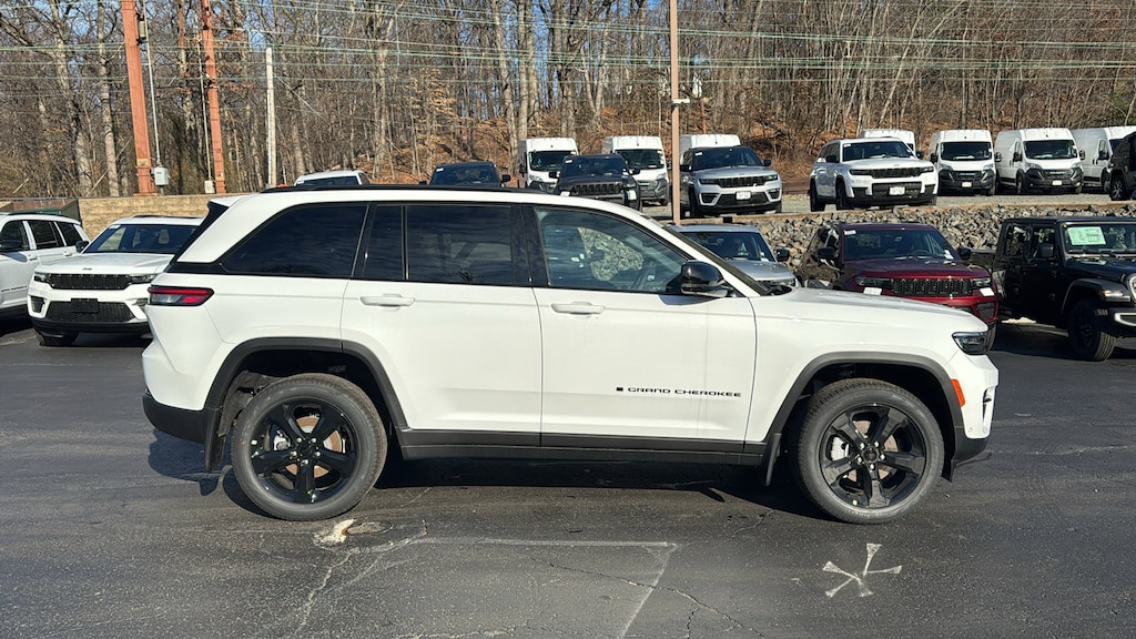 Bright White Clearcoat 2025 Jeep Grand Cherokee Limited 4WD 8-Speed Automatic 3.6L V6 24V VVT 4WD, 2nd-Row Manual Window Shades, 4-Wheel Disc Brakes, 506 Watt Amplifier, 6 Speakers, 9 Amplified Speakers with Subwoofer, ABS brakes, Active Noise Control System, Air Conditioning, Alloy wheels, AM/FM radio: SiriusXM with 360L, Anti-whiplash front head restraints, Audio memory, Auto High-beam Headlights, Auto-Dimming Exterior Driver Mirror, Automatic temperature control, Black Appearance Package, Brake assist, Bumpers: body-color, Capri Leatherette Seats, Capri Leatherette with Axis II Seats, Compass, Delay-off headlights, Driver door bin, Driver vanity mirror, Dual front impact airbags, Dual front side impact airbags, Dual-Pane Panoramic Sunroof, Electronic Stability Control, Emergency communication system, Four wheel independent suspension, Front anti-roll bar, Front Bucket Seats, Front Center Armrest w/Storage, Front dual zone A/C, Front fog lights, Front License Plate Bracket, Front reading lights, Front/Rear Doors and Liftgate with Passive Entry, Fully automatic headlights, Garage door transmitter, Gloss Black Exterior Accents, Heated door mirrors, Heated front seats, Heated rear seats, Heated steering wheel, Illuminated entry, Integrated Off-Road Camera, Intersection Collision Assist System, Knee airbag, Low tire pressure warning, Luxury Tech Group II, Memory seat, Memory Steering Column, Model Year Tracking, MOPAR Finishing Package, MOPAR Front Splash Guards, MOPAR Paint Protection Film, MOPAR Rear Splash Guards with Jeep Logo, Navigation System, Normal Duty Suspension, Occupant sensing airbag, Outside temperature display, Overhead airbag, Overhead console, Panic alarm, ParkSense Front/Rear Park Assist with Stop, ParkView Rear Back-Up Camera, Passenger door bin, Passenger vanity mirror, Power door mirrors, Power driver seat, Power Liftgate, Power passenger seat, Power steering, Power Tilt/Telescope Steering Column, Power windows, Quick Order Package 23E, Radio data system, Radio: Uconnect 5 Nav with 10.1 Display, Rain Sensitive Windshield Wipers, Rear anti-roll bar, Rear Back-Up Camera Washer, Rear reading lights, Rear window defroster, Rear window wiper, Rearview Autodim Digital Display Mirror, Remote keyless entry, Security system, Speed control, Speed-Sensitive Wipers, Split folding rear seat, Spoiler, Steering wheel mounted audio controls, Surround View Camera System, Tachometer, Telescoping steering wheel, Tilt steering wheel, Traction control, Trip computer, Turn signal indicator mirrors, Variably intermittent wipers, Ventilated Front Seats, Voltmeter, Wheels: 18 x 8 Polished/Painted Aluminum, Wheels: 20 x 8.5 Gloss Black Painted Aluminum, Wireless Charging Pad, 4WD.