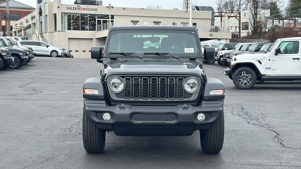 Black Clearcoat 2026 Jeep Wrangler Sport 4WD 8-Speed Automatic 2.0L I4 DOHC 12.3 Touchscreen Display, 3.45 Overall Top Gear Ratio, 4-Wheel Disc Brakes, 4G LTE Wi-Fi Hot Spot, 8 Speakers, ABS brakes, Air Conditioning, AM/FM radio: SiriusXM with 360L, Apple CarPlay, Apple CarPlay/Android Auto, Aux Battery, Black 3-Piece Hard Top, Brake assist, Cloth Low-Back Bucket Seats, Compass, Connectivity - US/Canada, Delay-off headlights, Driver door bin, Driver vanity mirror, Dual front impact airbags, Dual front side impact airbags, Electronic Stability Control, For More Info, Call 800-643-2112, Freedom Panel Storage Bag, Front anti-roll bar, Front Bucket Seats, Front Center Armrest w/Storage, Front fog lights, Front reading lights, Google Android Auto, Illuminated entry, Integrated Center Stack Radio, Integrated roll-over protection, Jeep Trail Rated Kit, Low tire pressure warning, MOPAR All-Weather Floor Mats, Non-Lock Fuel Cap Without Discriminator, Normal Duty Suspension, Occupant sensing airbag, Outside temperature display, Overhead airbag, Panic alarm, ParkView Rear Back-Up Camera, Passenger door bin, Passenger vanity mirror, Power steering, Power windows, Quick Order Package 22B Sport, Radio data system, Radio: Uconnect 5 with 12.3 Display, Rear anti-roll bar, Rear reading lights, Rear Window Defroster, Rear Window Wiper/Washer, Remote keyless entry, SiriusXM Radio Service, SiriusXM with 360L, Speed control, Steering wheel mounted audio controls, Stop-Start Dual Battery System, Tachometer, Telescoping steering wheel, Tilt steering wheel, Traction control, Trip computer, Variably intermittent wipers, Wheels: 17 x 7.5 Black Steel Styled. Not all customers qualify for all incentives. See Dealer for details. Price includes: $1000 - 2026 National Select Inventory Bonus Cash . Exp. 01/04/2027Family owned and operated: Salerno Duane is a neighborhood store that has been in business for over 35 years. Hundreds of new and preowned vehicles in stock. Buying a car shouldn't feel like a chore. We know how to make it easy and fun. We thrive on our reputation; come in and find out why.